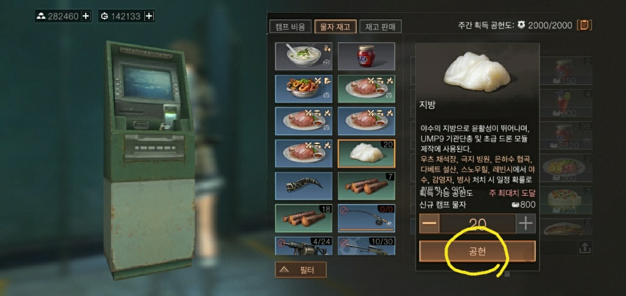 2.공헌도는 매주 물자기부를 통해 최대 2000을 얻을수 있습니다. 또한 캠프 운영비용이 납입될때 매일 우편함으로 500씩 얻을 수 있고 순찰, 해양 클리어로 추가로 얻을 수 있습니다.