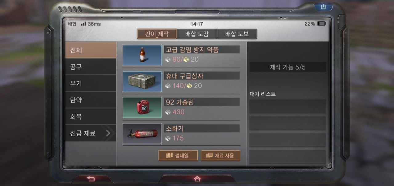 *버프도 있고 일반 감염방지약품보다 건강 회복도 많은점, 그리고 제작 경험치를 잘 올려줘서 만들일이 많습니다.